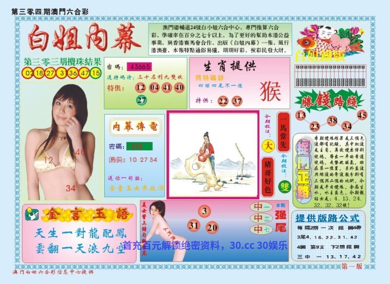 | 308期《白姐九肖》 综合九肖♘:鼠猴鸡虎龙兔猪狗羊 综合七肖♘:鼠猴鸡虎龙兔猪 ![]() |